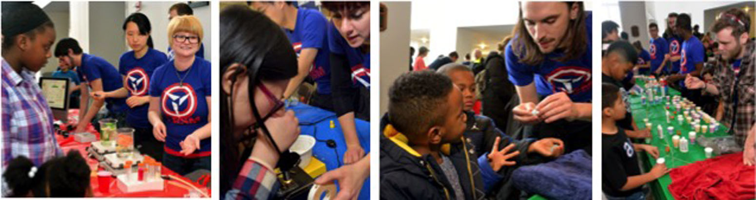 The 6th annual Philadelphia Materials Day was held on Saturday, February 6, 2016 at the Bossone Research Center at Drexel University. This joint venture between Penn and Drexel Universities was attended by over 1100 students and parents. Each year faculty and their students present demos on materials-related themes of interest to K-12 students. The themes this year were: Communications, Earth, Environment, Energy, and Sports. We had our highest MRSEC participation with 11 groups of affiliated faculty present, which included those of Professors Eric Schelter, Neil Tomson, James Petersson, Rob Carpick, Kevin Turner, Lee Bassett, Karen Winey, Russ Composto, Shu Yang, Charlie Johnson, and Arjun Yodh.
